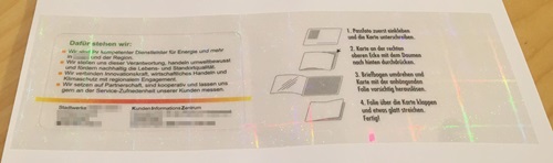 - Karte an einer Ecke nach hinten durch den Briefbogen drücken, das Laminat über die Karte kleben, fertig